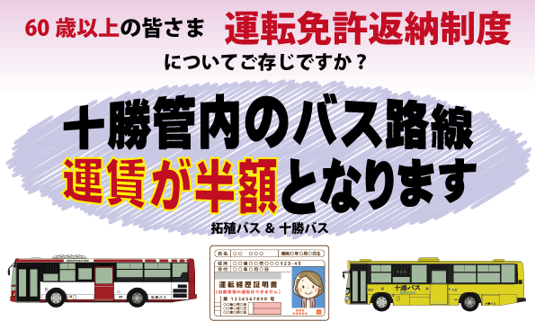 【帯広市 高齢者バス無料乗車証のご利用方法について】(PDF) 【60歳以上 運転経歴証明書をお持ちの方の運賃半額について】(PDF) |