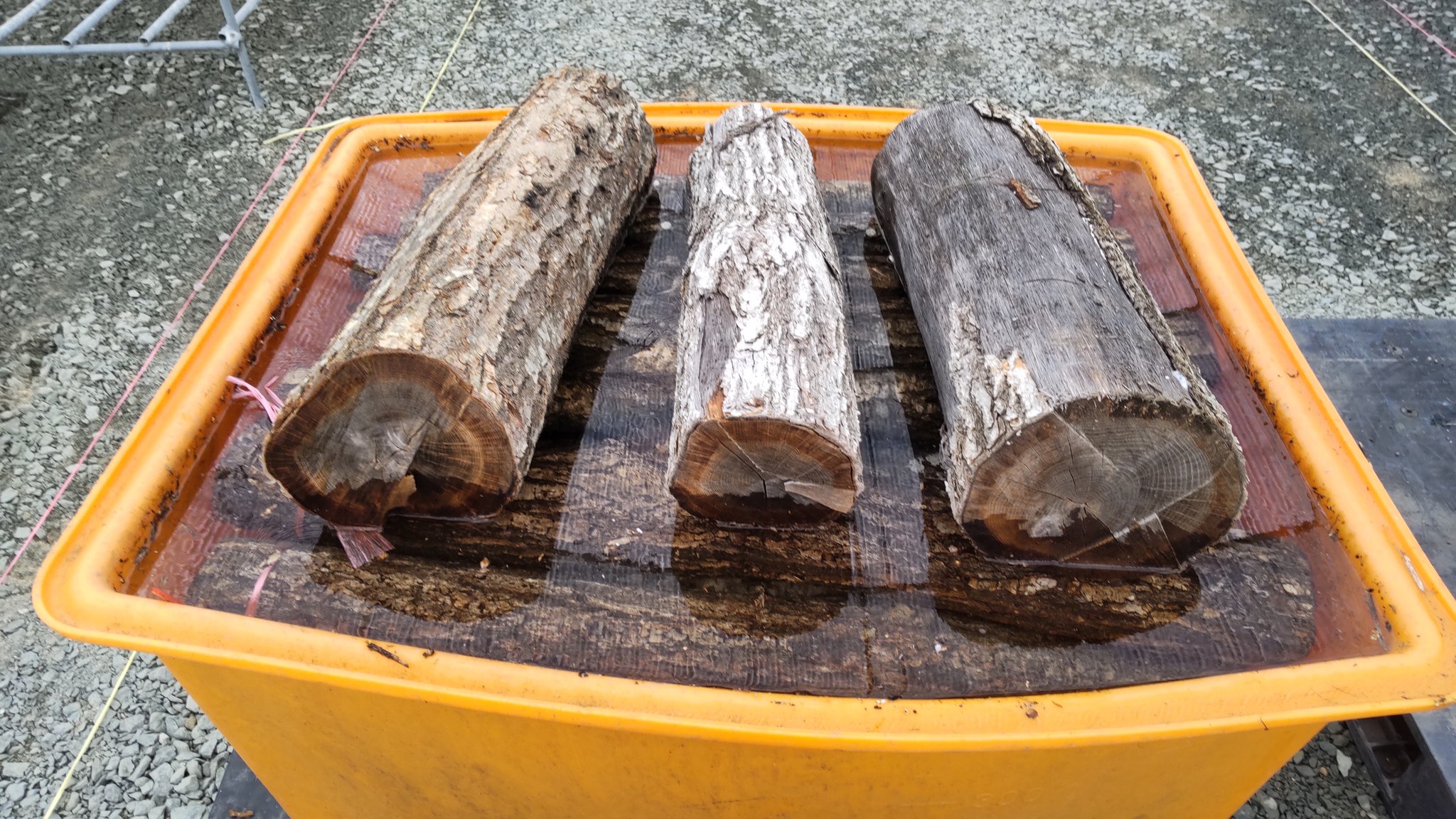 そんな中、昨年菌を植えたほだ木を浸水させシイタケを発生テストを行いました。