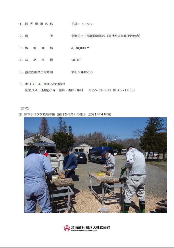 2025年12月より、しいたけ狩りは曜日を問わず全日事前予約制となりますので、お電話にてご予約ください。TEL 0156-67-9105
