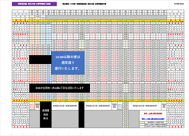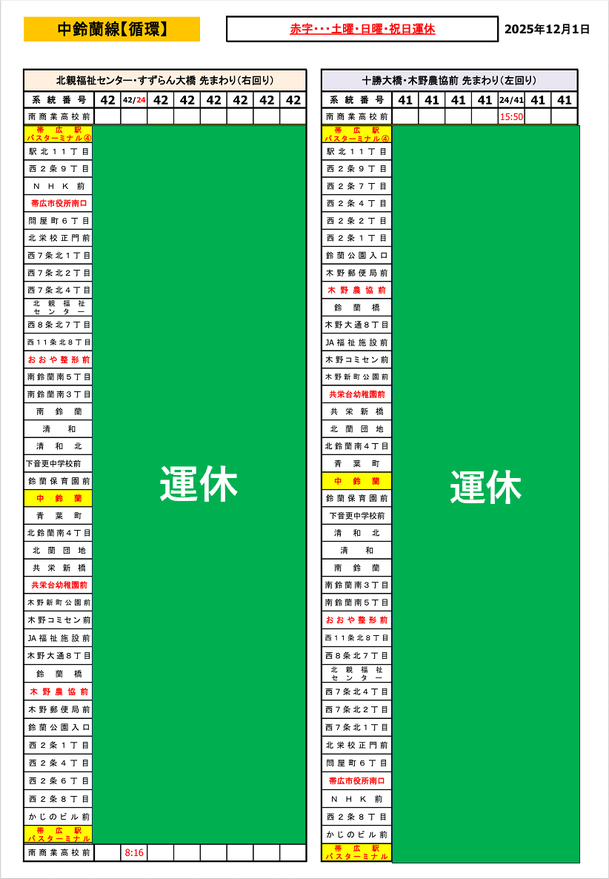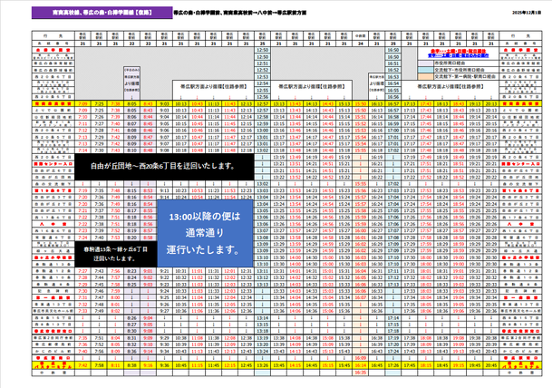 南商業高校線・帯広の森線の13:00以降の便は通常通り運行いたします。